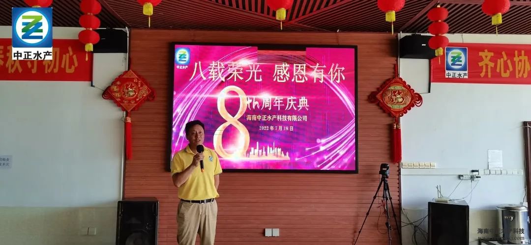 八載春秋守初心,齊心協(xié)力譜新篇。2022年7月18日,中正水產(chǎn)成立8周年慶祝大會在公司食堂隆重舉行。中正水產(chǎn)董事長雷夏雨、總裁雷秋涼、副總裁王平、生產(chǎn)部副總經(jīng)理宋永強、各分公司代表及新龍基地全體員工參加了活動。